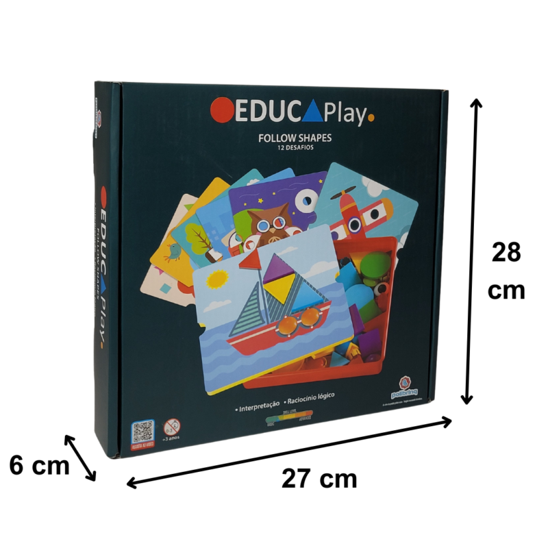 Descrição do Produto: O “Follow Shapes” foi desenvolvido para aprimorar habilidades e capacidades cognitivas e criativas das crianças. Com ele, os pequenos vão exercitar o pensamento crítico e a concentração, enquanto se divertem com um método de aprendizagem lúdico e descontraído.