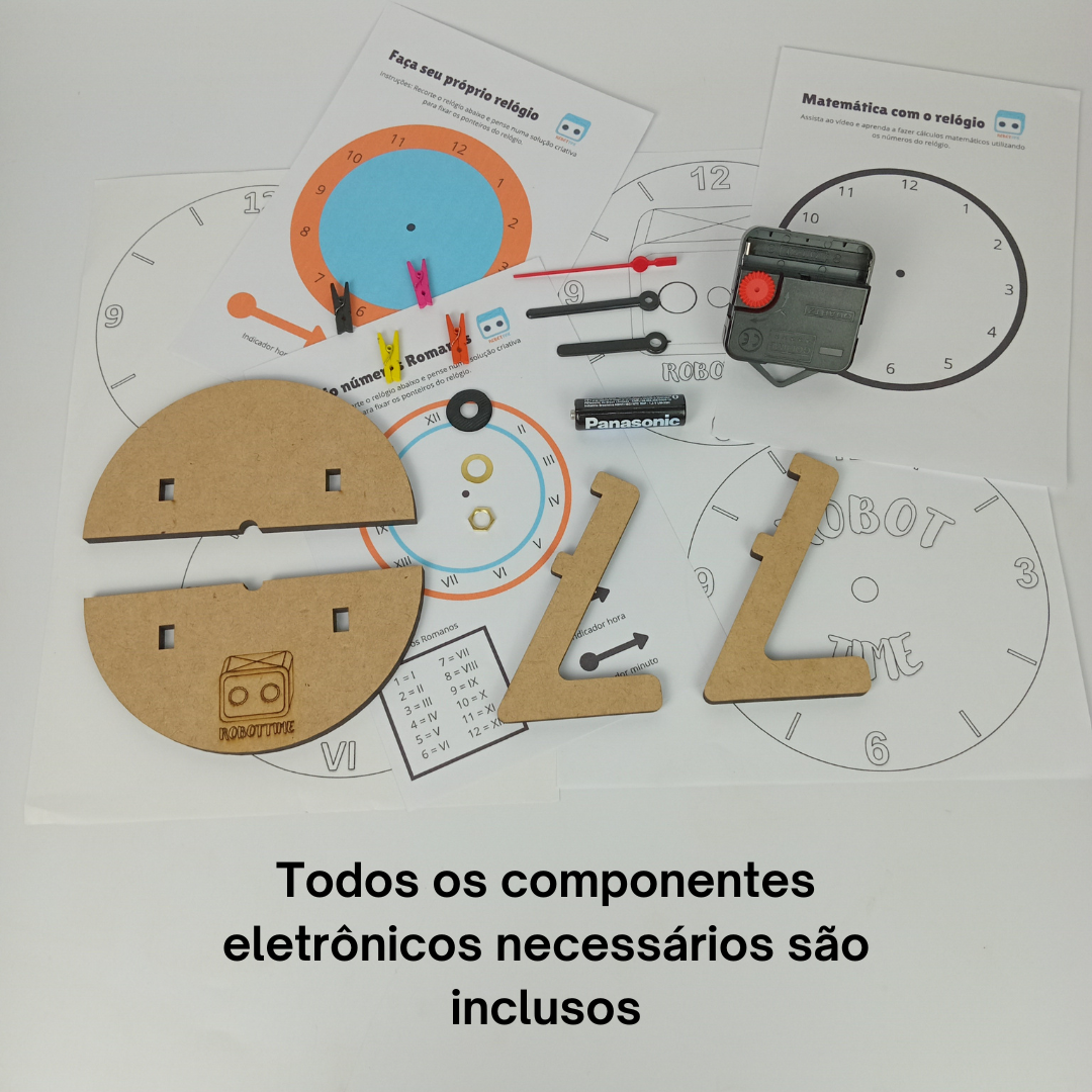 Descrição do Produto: Este “Kit Robottime Relógio” foi desenvolvido para aprimorar habilidades e capacidades cognitivas e criativas das crianças. Com ele, os pequenos vão exercitar o pensamento crítico e a concentração, enquanto se divertem com um método de aprendizagem lúdico e descontraído.